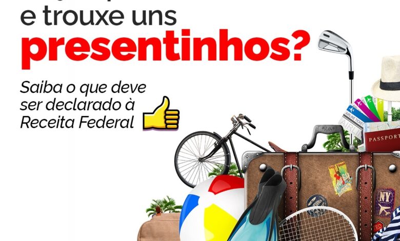 “Fez uma viagem internacional e trouxe umas coisinhas? Siga as regras e não tenha problemas com a @ReceitaFederal”, diz a publicação.