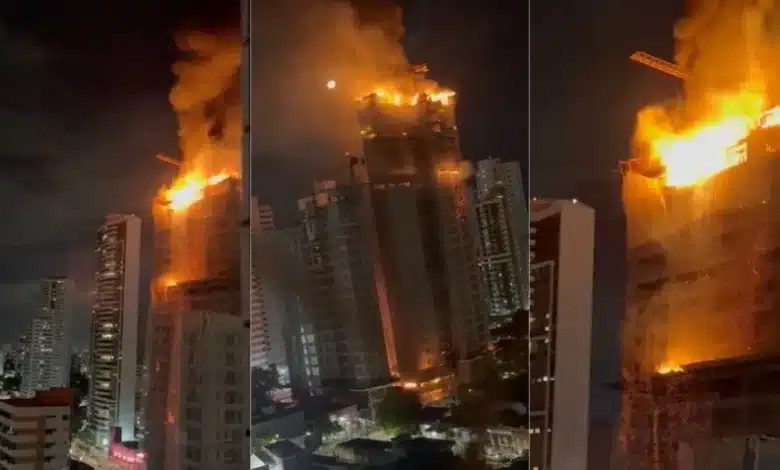 Um incêndio de grandes proporções atingiu um edifício na zona oeste de Recife (PE) na noite desta quinta-feira (28). Imagens registradas por moradores do entorno, publicadas no X (antigo Twitter), mostram o imóvel em chamas e fragmentos da estrutura caindo da edificação, que tem mais de 20 andares e está em construção. Em comunicado, construtora Carrilho, responsável pelo empreendimento, afirmou que não houve registro de feridos.