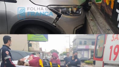 Mulher fica ferida após perder controle de veículo e colidir em parede de comércio