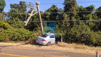 Motorista perde controle de veículo e derruba poste na rodovia Nelson Nogueira