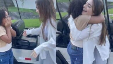 Maria Flor, 10, filha do ator e ex-Big Brother Douglas Silva, ficou emocionada ao conhecer a influenciadora e ex-BBB Jade…