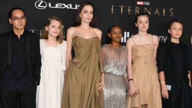Angelina Jolie usa joia no queixo e empresta vestido para filha em pré-estreia