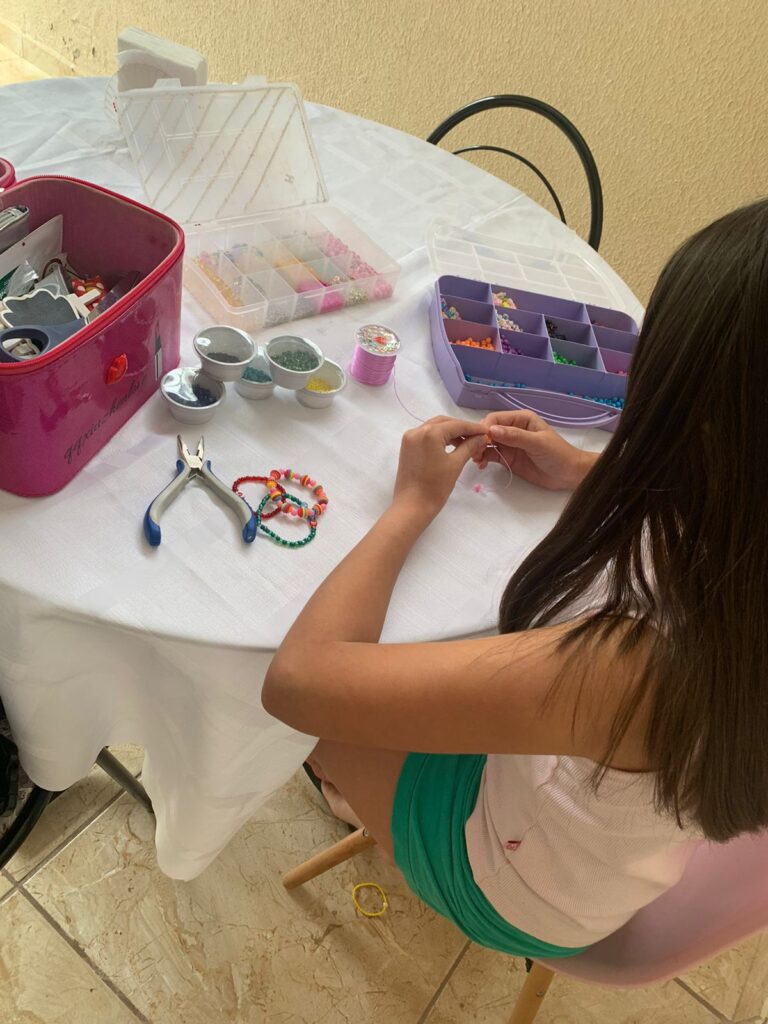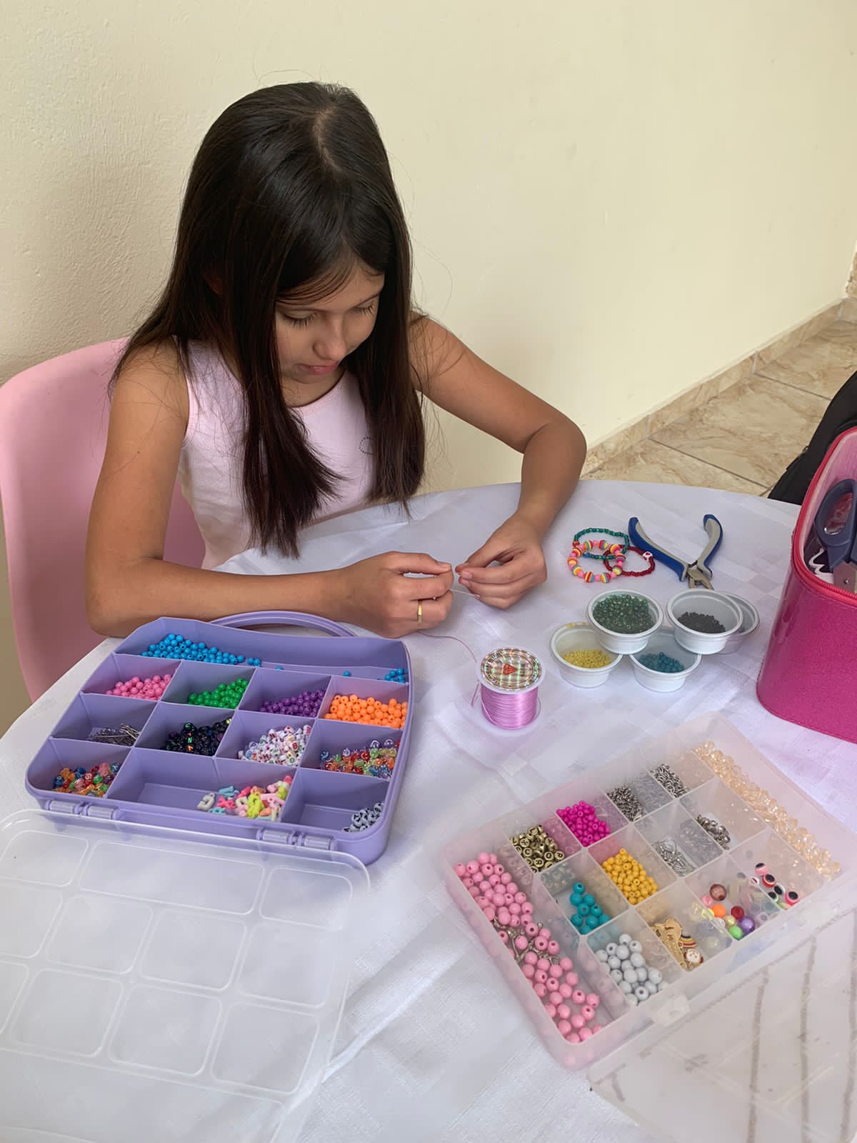 “No começo não passava de uma brincadeira, fazia as bijuterias só para mim, as pessoas viam e gostavam, aí pensei em fazer para vender e ganhar meu próprio dinheiro. Meu avô comprou as primeiras miçangas para que eu pudesse iniciar. Minha mãe e avó começaram a divulgar meu trabalho no Instagram. Minha tia e prima foram as primeiras clientes”.