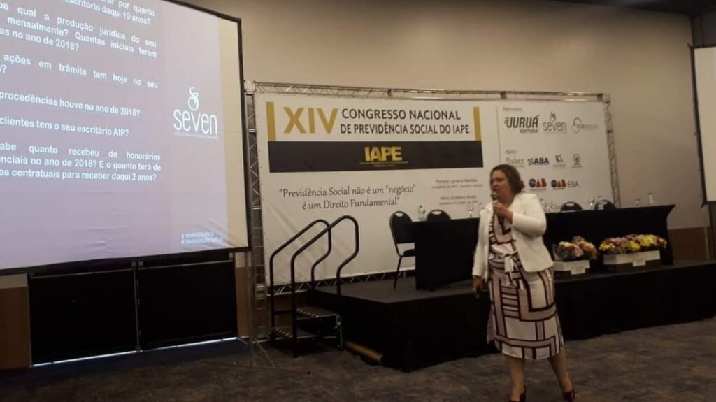 Giordana apresentando sua Seven Consultoria no XIV Congresso Nacional de Previdência Social do Iape