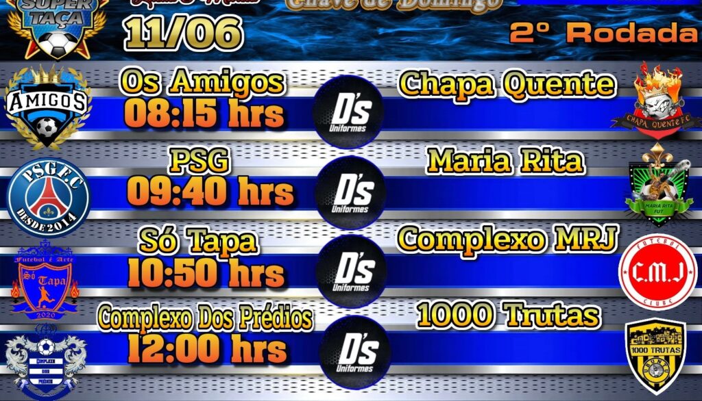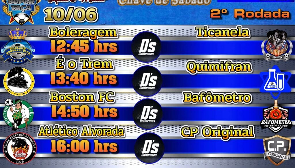 Depois de um começo eletrizante, no final de semana passado, os times da Super Taça estão prontos agora para a segunda rodada do campeonato. Confira os horários de jogos que acontecem no campo do City Petrópolis: