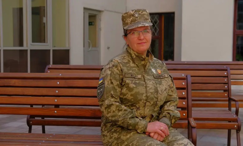 Lyudmyla Marfin, capelã voluntária de 52 anos, se dedica à atuação na linha de frente do conflito na Ucrânia.