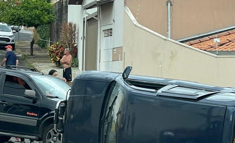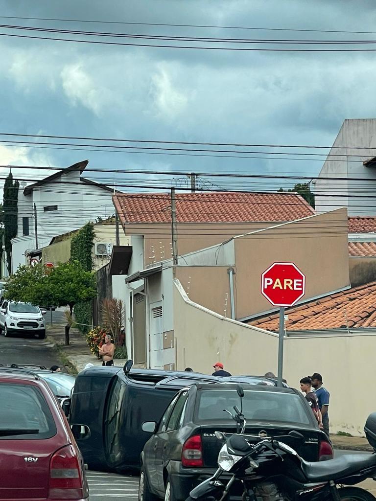 Um acidente aconteceu agora há pouco, às 14h, no prolongamento do Jardim Dr. Antônio Petraglia, nas proximidades do NGA. Um carro está capotado no meio da rua Manuel de Freitas, e o outro veículo envolvido no acidente está bastante danificado.