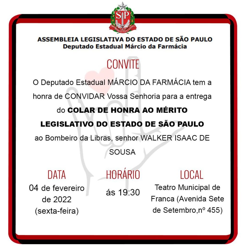 Desta vez o Deputado Estadual Márcio da Farmácia indicou a homenagem através da entrega de um Colar de Honra ao Mérito Legislativo do Estado de São Paulo, em um evento na última semana no Teatro Municipal de Franca.