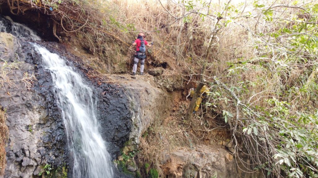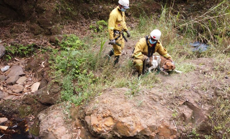 Bombeiros salvam cachorro preso em cachoeira no Jardim Palma