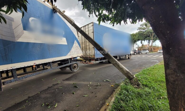 Caminhão atinge fiação e derruba poste no Leporace em Franca