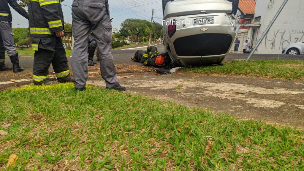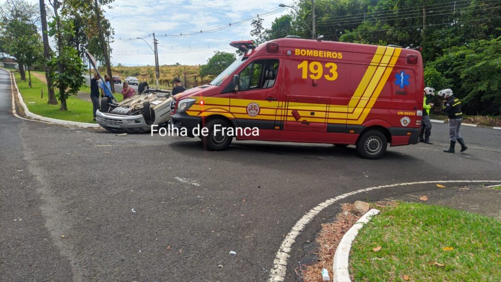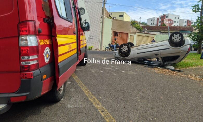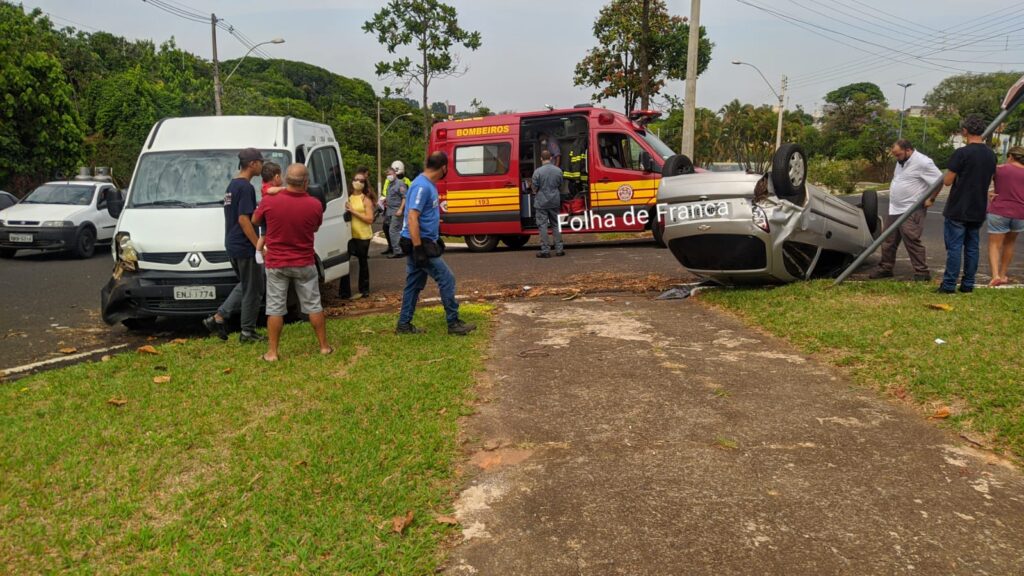 Carro colide e capota na Alonso y Alonso em Franca