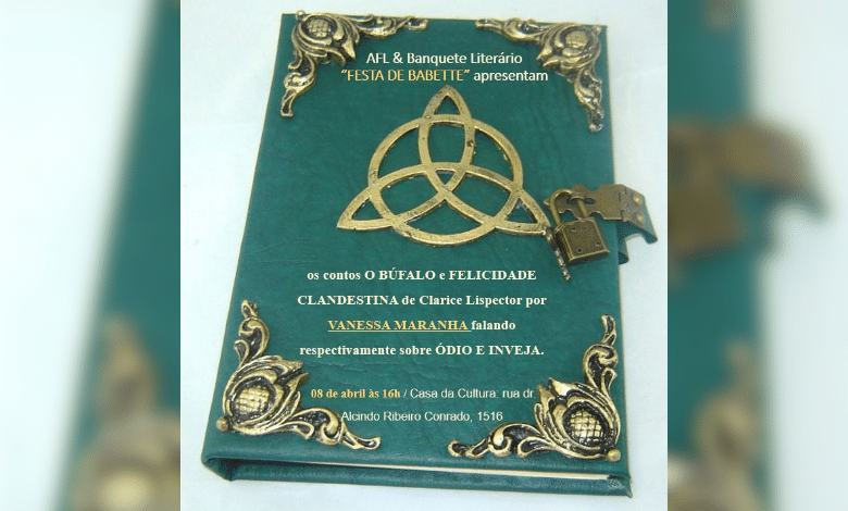 O segundo encontro do Banquete Literário “Festa de Babette”, da AFL (Academia Francana de Letras) já tem data marcada para acontecer. Chefiado pela imortal francana Vanessa Maranha, o evento ocorre na Casa da Cultura e do Artista Francano “Abdias do Nascimento” no próximo sábado, 8, às 16h, e abordará os contos “O Búfalo” e “Felicidade Clandestina”, de Clarice Lispector, cujos temas principais são, respectivamente, ódio e inveja. A entrada é gratuita.