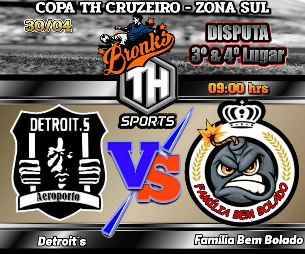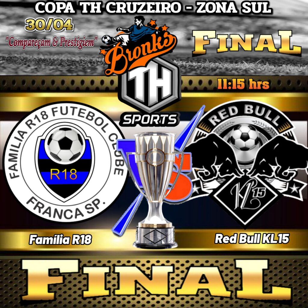 É isso mesmo! A final do Campeonato TH Cruzeiro Zona Sul vai ser realizada nesse domingo, dia 30/04. Às 9h00 vai acontecer a disputa do terceiro e quarto lugar; às 10h15 será o jogo feminino entre as equipes Flaime Franca x Fênix e às 11h15 será realizada a grande final, entre a Família R18 e a Red Bull Kl 15. Os jogos têm levado centenas de pessoas ao campo e, nesse domingos, não deve ser diferente. Confira a tabela com os jogos, agende os horários e não perca essa domingão de futebol!