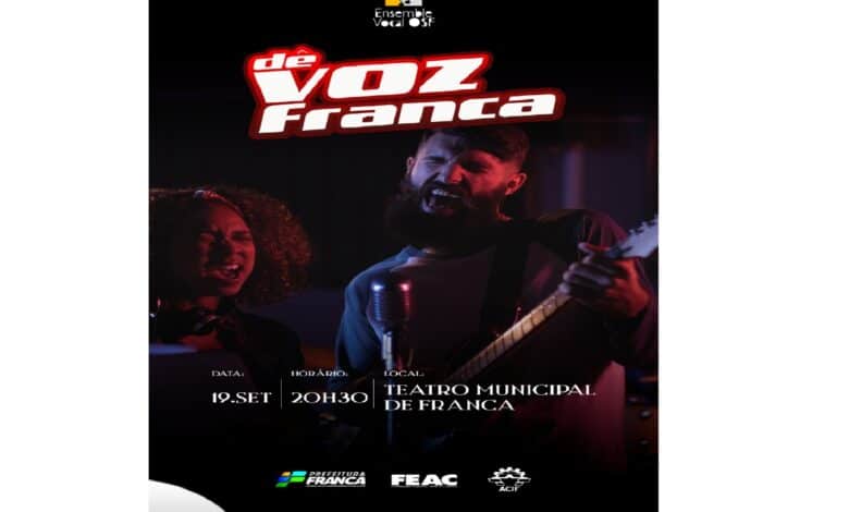 A FEAC (Fundação para o Esporte, Arte e Cultura), em parceria com o Ensemble Vocal OSF, promoverá no próximo domingo, 19, às 20h30 no Teatro Municipal “José Cyrino Goulart”, o primeiro concerto de 2021 do grupo. Intitulada “Dê Voz Franca”, a divertida proposta é parodiar o programa televisivo “The Voice Brasil”, que reúne artistas de todo o país em disputas vocais avaliadas por jurados técnicos e público. “Desta vez, faremos a divertida parodia de um programa de calouros aclamado no mundo todo, o ‘The Voice’. Num trocadilho com o nome da atração, o tema do concerto sugere que Franca está dando voz aos cantores locais!”, afirma o maestro Nazir Bittar. “Será uma mistura de boa música com risadas.”