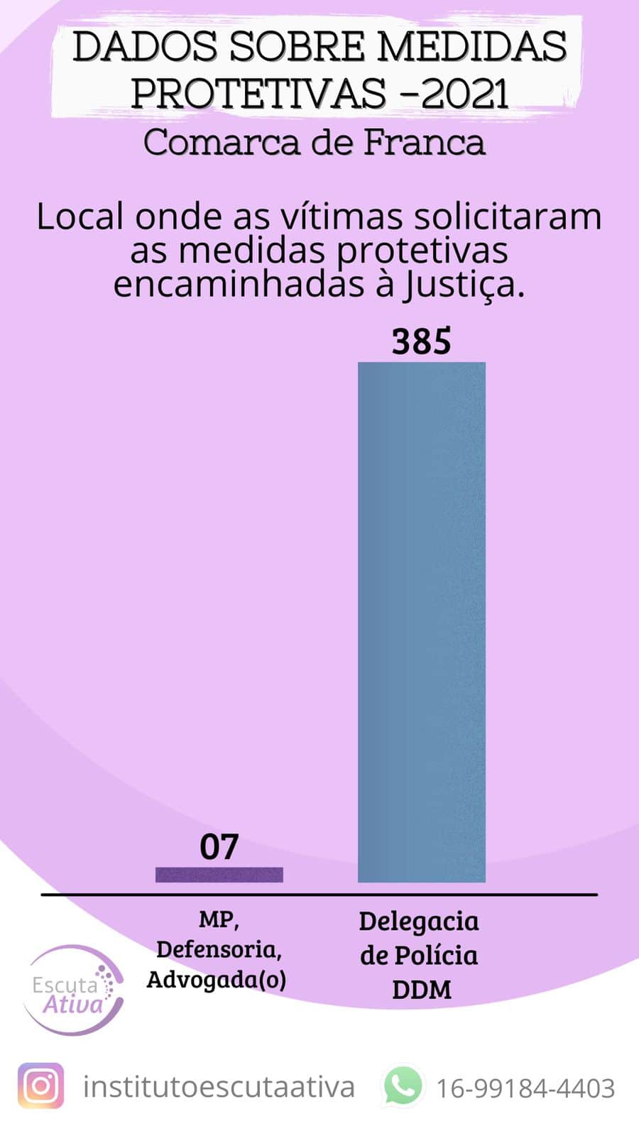 Em Franca, o projeto realiza, também, a “busca ativa” de mulheres em situação de violência doméstica. No total, o Instituto manteve contato com 69 mulheres com processos criminais em andamento.