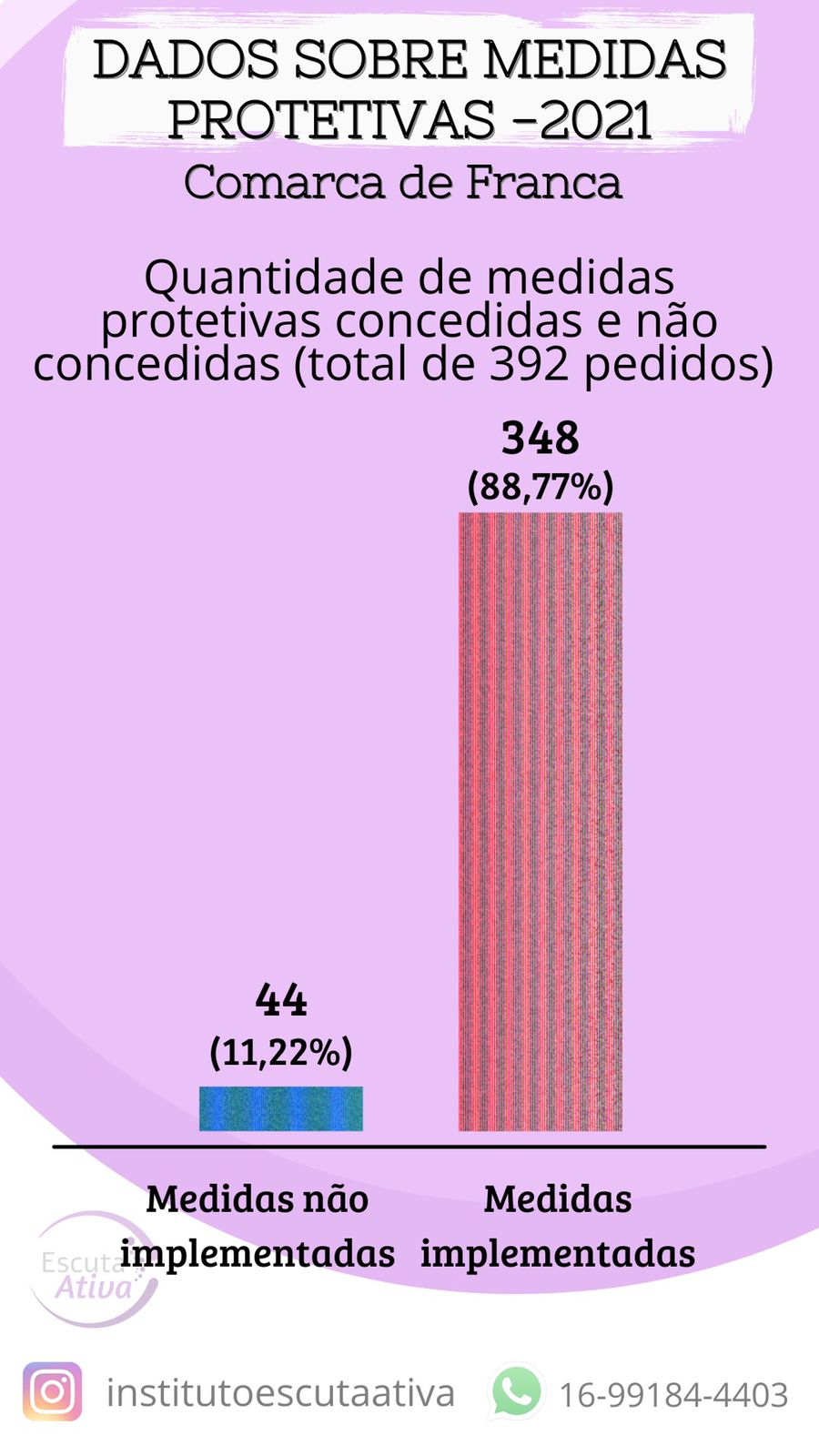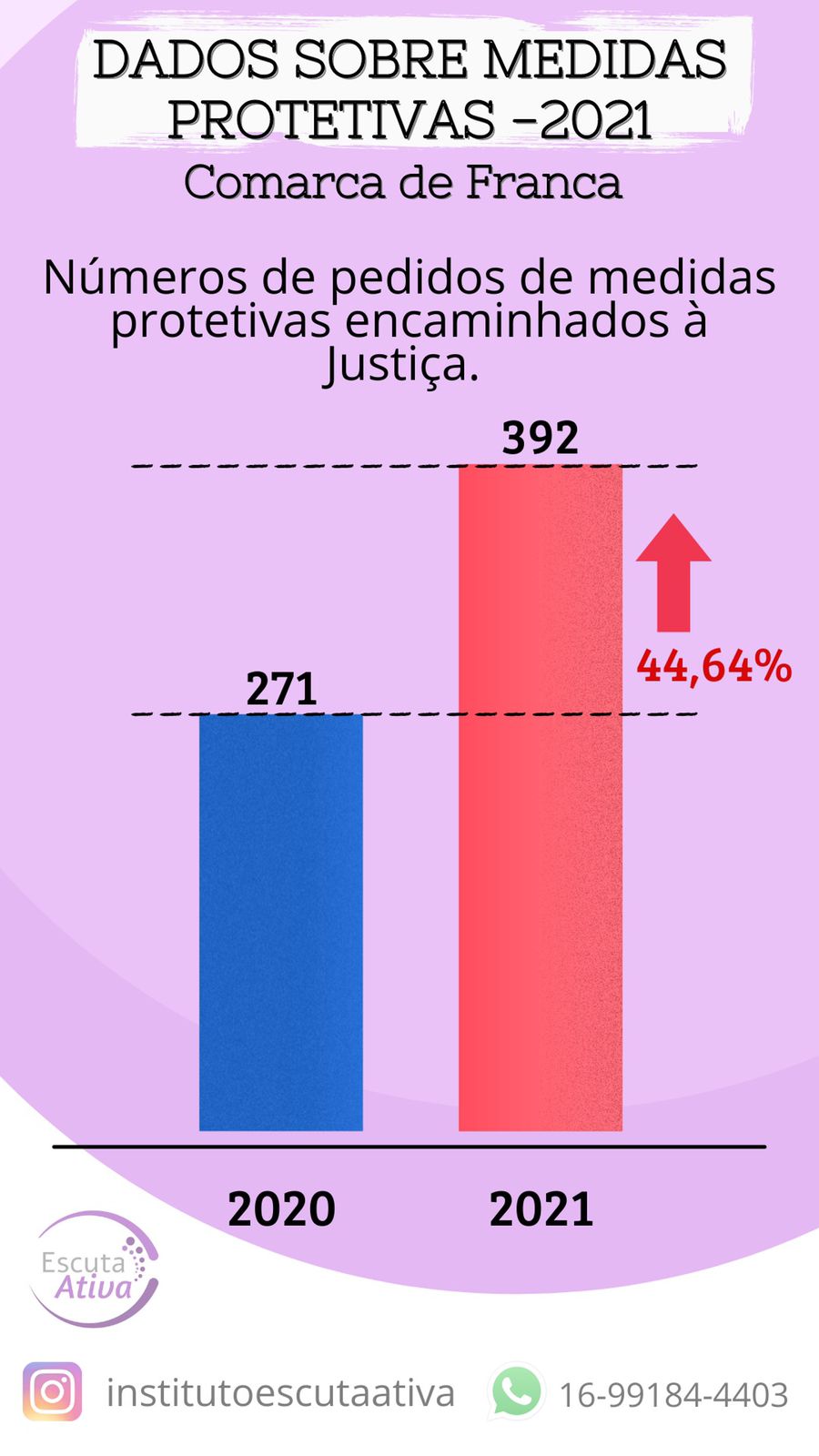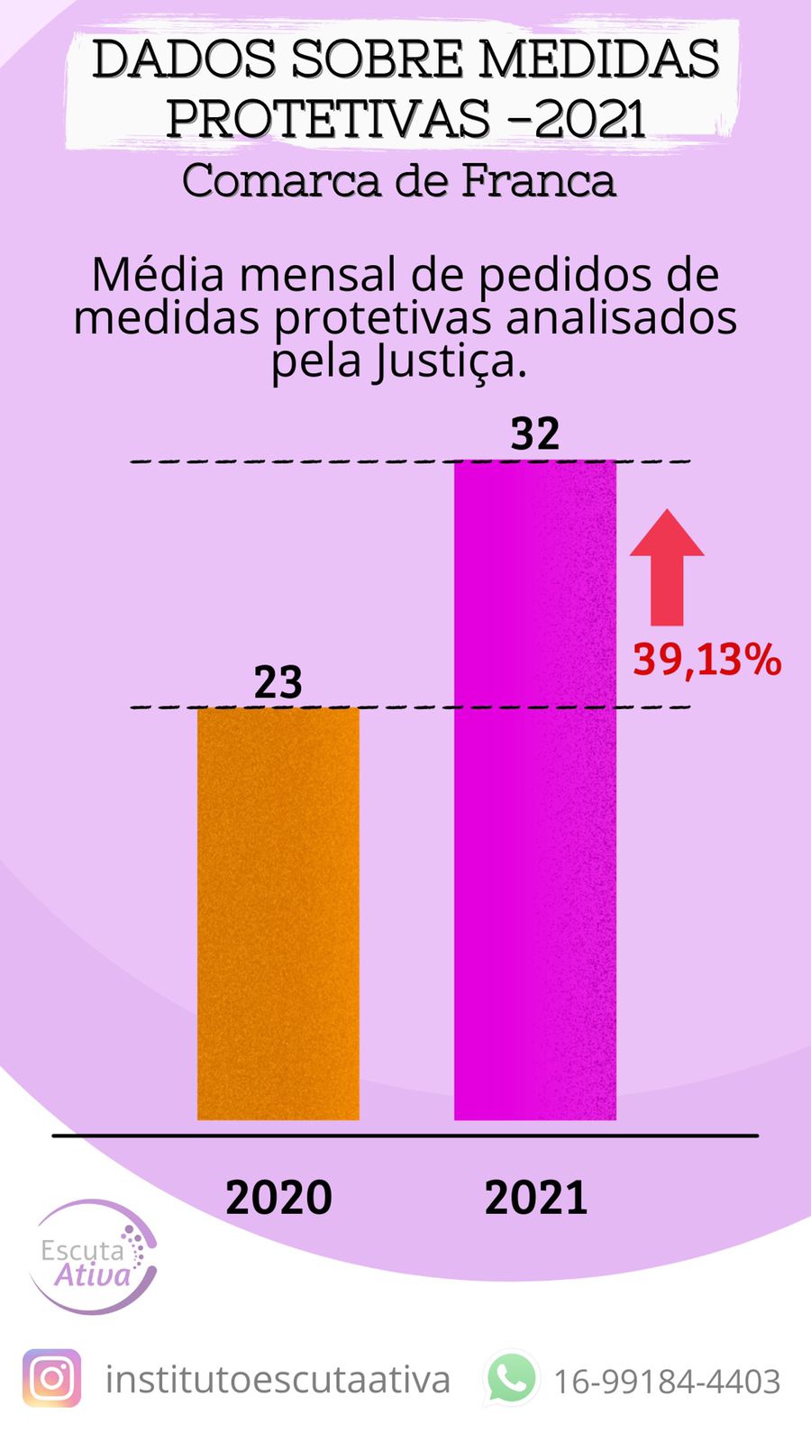 Hoje as mulheres de Franca e região estão muito bem amparadas , o trabalho do Instituto Escuta Ativa , juntamente com a rede de apoio vem mostrando para as mulheres que é possível sair de um relacionamento abusivo e que elas tem com quem contar. Parabéns por esse 1 ano de atuação, que os próximos possam vir e cada mais mulheres sejam resgatadas e acolhidas.