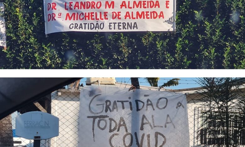Familiares e amigos de pacientes em tratamento contra a covid-19 no Hospital do Coração, realizaram uma homenagem aos profissionais de saúde que atuam na ala Covid da unidade de saúde. Do lado externo da entrada do hospital, eles colocaram faixas e cartazes em agradecimentos aos profissionais, reconhecendo a importância do trabalho prestado por esses trabalhadores. Nas faixas foram deixados recados como “Gratidão ao hospital, em especial para a ala Covid, estamos orando por vocês”; “Aos nossos anjos gratidão eterna”; e “Gratidão a toda ala covid”.