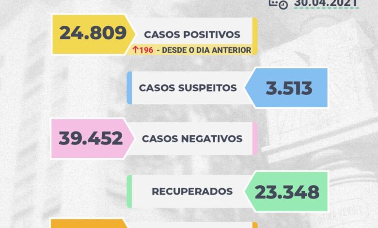 Também nessa sexta-feira foram confirmados 196 novos casos positivos de Covid-19, passando de 24.613 para 24.809 pessoas. Somente neste mês de abril foram 2.668 novas pessoas contaminadas com o coronavírus em Franca.