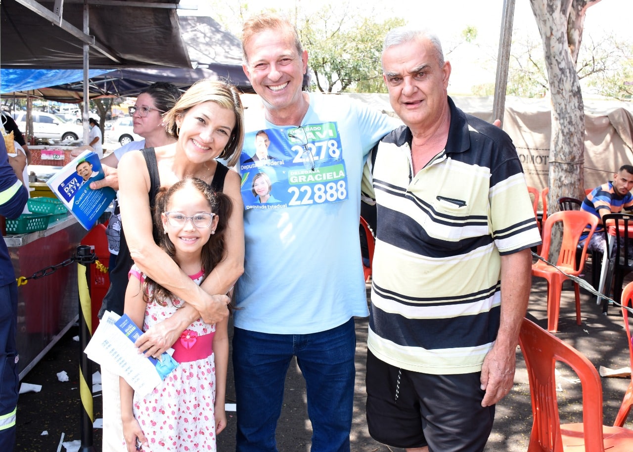 Acompanhada do Delegado Davi (PL), candidato a deputado federal, Graciela conversou com feirantes e clientes, tirou fotos, ganhou abraços e recebeu diversas manifestações de apoio.