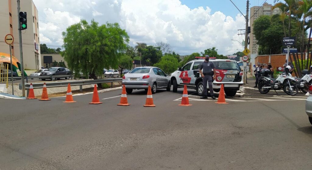 A faixa da direita foi interditada, passando apenas um veículo por vez, quando uma motorista tentou passar em dois carros e acabou atingindo a viatura, nenhum ocupante do veículo se feriu.