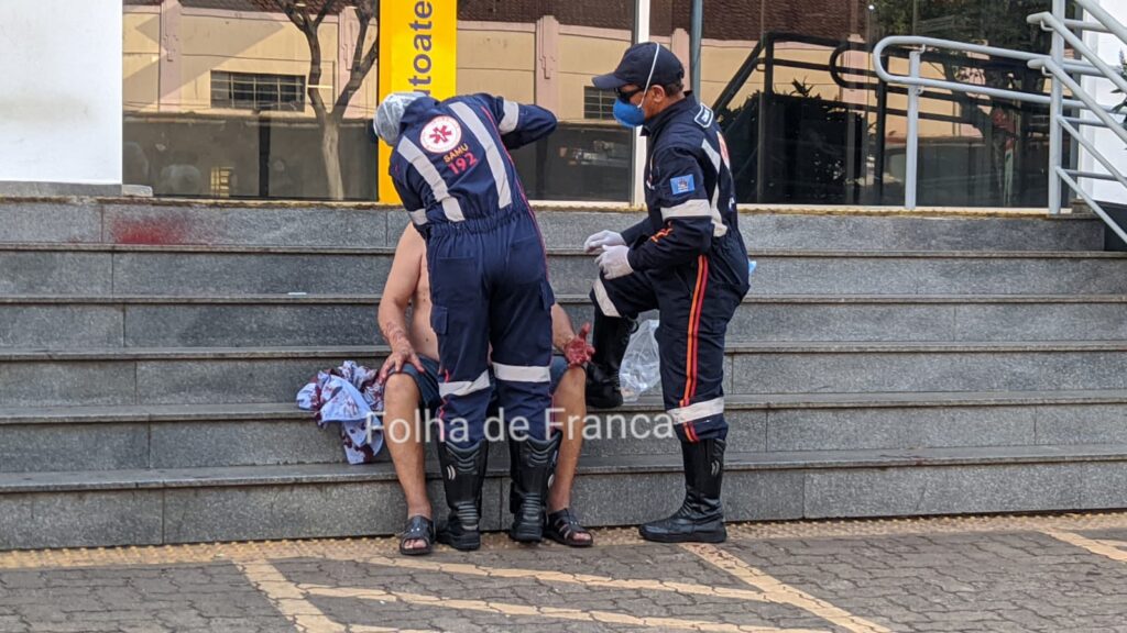 A Polícia Militar foi acionada e chegou rapidamente ao local. O idoso estava sentado na escada com um corte na cabeça e perdeu muito sangue. O Samu foi acionado, o idoso recebeu os primeiros atendimentos no local e foi encaminhado a UPA do Anita.