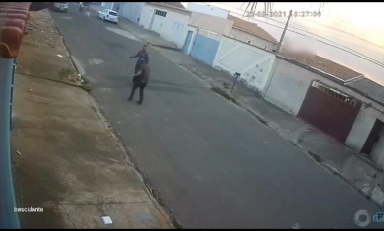 Câmeras de segurança registraram o assassinato de Luiz Guilherme Donizete Santos, de 33 anos, na Rua Ângelo Natal, no Jardim Luiza II, em Franca. O crime aconteceu no fim da tarde desse domingo, 22. As imagens mostram o momento em que o atual marido da ex-mulher da vítima, Mizael Macedo, desfere diversas facadas em Guilherme e depois foge. O assassino segue foragido. As cenas são extremamente fortes.