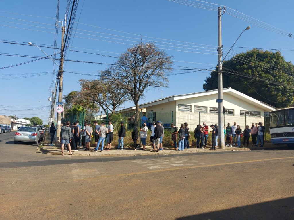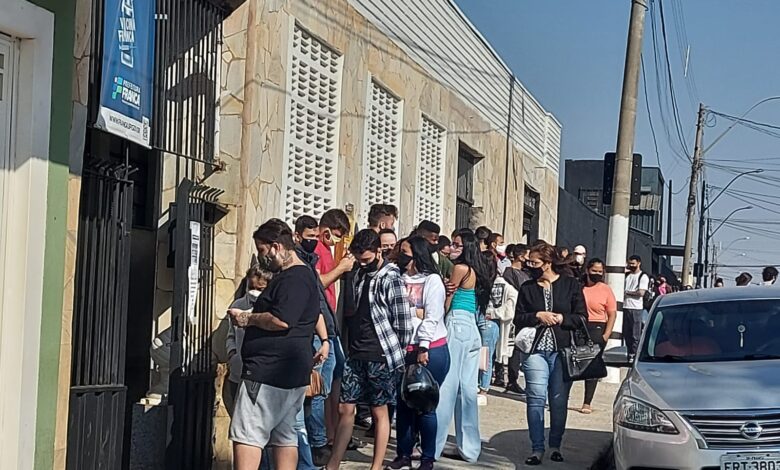 Jovens fazem fila para receber a 1ª dose da vacina contra a covid-19 em Franca
