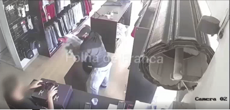 Tudo começou na manhã de ontem, 28, quando o ladrão se passando por cliente entra na loja, separa várias roupas e sapatos e, ao passar no caixa, anuncia um assalto com uma arma apontada para o atendente. Rapidamente o bandido coloca produto do roubo em um saco preto e foge. Já na madrugada desta quarta-feira, 29, três marginais chegaram no mesmo estabelecimento com um veículo Santana, dois bandidos descem, o motorista dá marcha-à-ré, e arrebenta a porta do estabelecimentos. Os criminosos carregam o que podem do local e fogem.