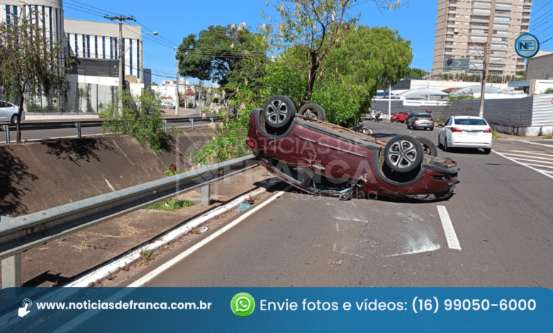 Mãe e filha saem ilesas após capotamento em avenida de Franca