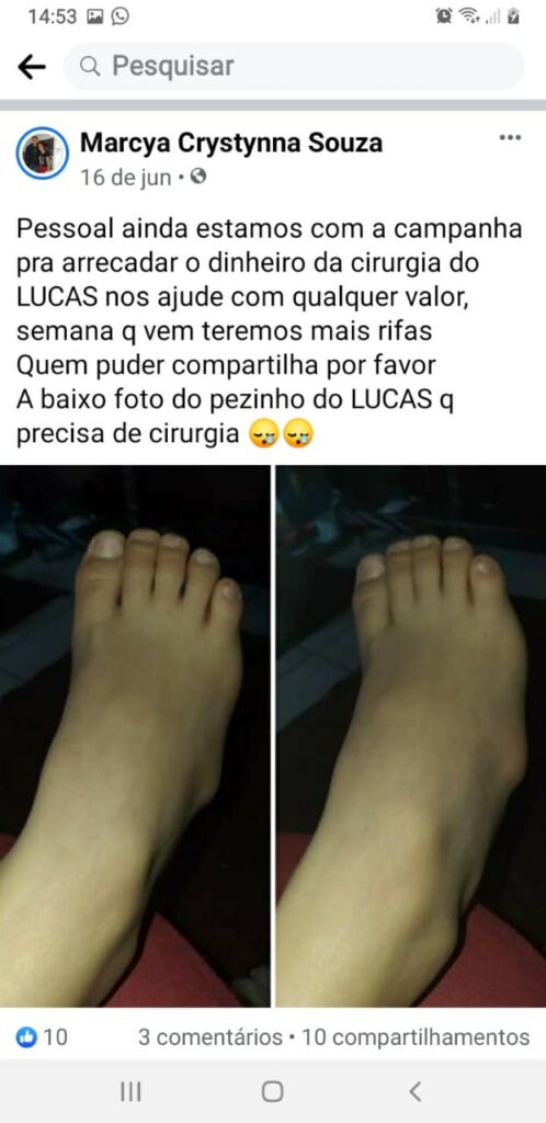 “Também fizemos uma vaquinha online, mas arrecadamos muito pouco até o momento. De toda forma, a vaquinha está no ar e agradecemos a quem puder colaborar”, disse Alessandro. A vaquinha chama “Ajude o Lucas a caminhar”, e você pode clicar aqui para acessá-la ou, ainda, enviar a quantia que puder pelo PIX da Márcia na chave 37901527811.