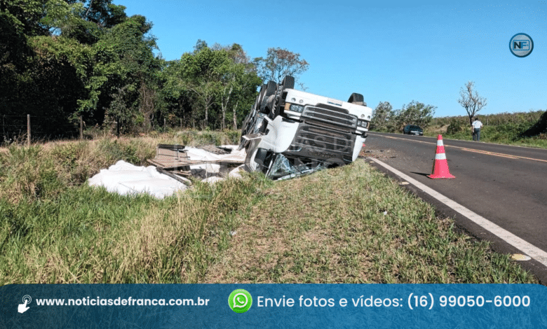 Segundo informações, o motorista levava uma carga de adubos para uma propriedade rural em Ribeirão Corrente quando, próximo ao quilômetro 6, perdeu o controle da carreta e saiu da pista. Com o peso da carga, o veículo capotou, parando com as rodas para cima, quase que esmagando a cabine.