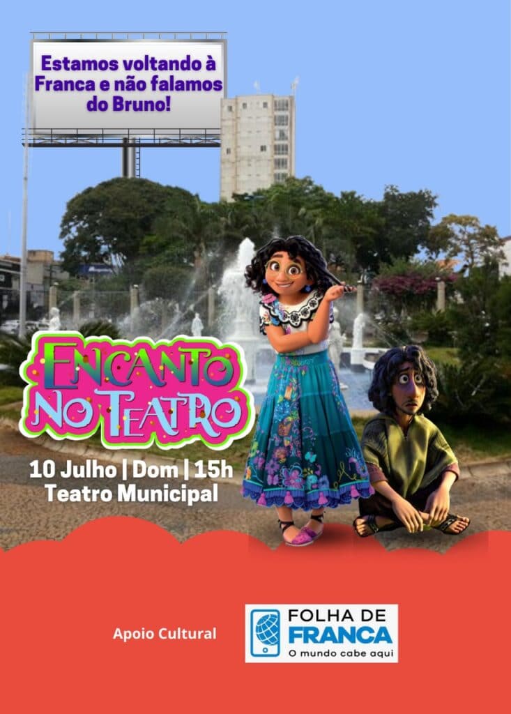 O musical “Encanto no Teatro” volta para se apresentar em Franca, no dia 10 de julho, às 15 horas, no Teatro Municipal. A censura é livre, o gênero infantil com duração de 55 minutos, com lotação de 380 lugares. A adaptação e direção foi feita por Biah Lopes.