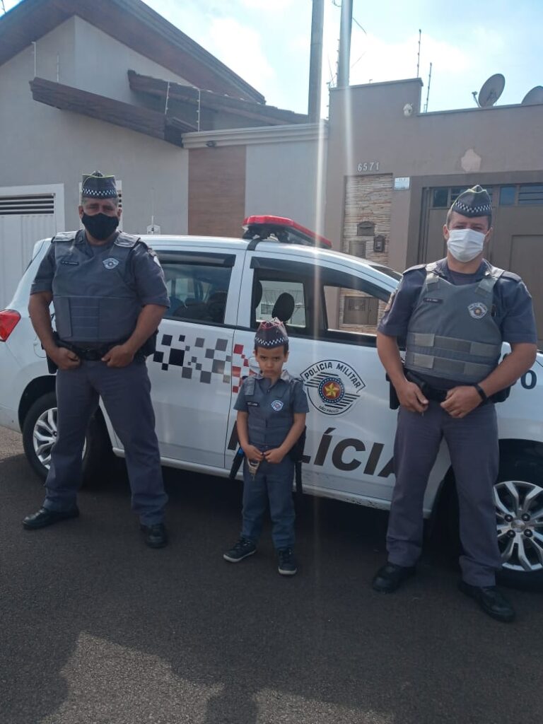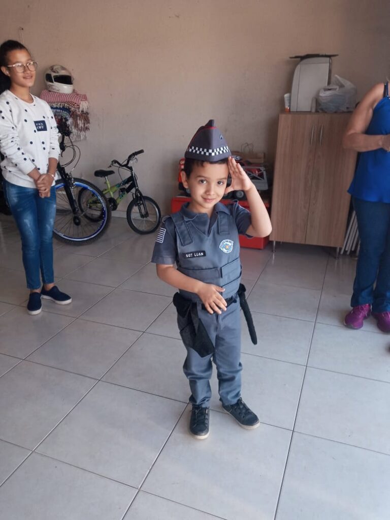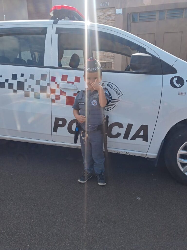 Luan fez questão de tirar fotos, especialmente com a pose típica em que os policiais costumam ficar de braços cruzados e cabeça erguida, postura que demonstra coragem. O garoto teve um dia mais que especial, além de passar seu aniversário com a família, teve a presença de amigos policiais.