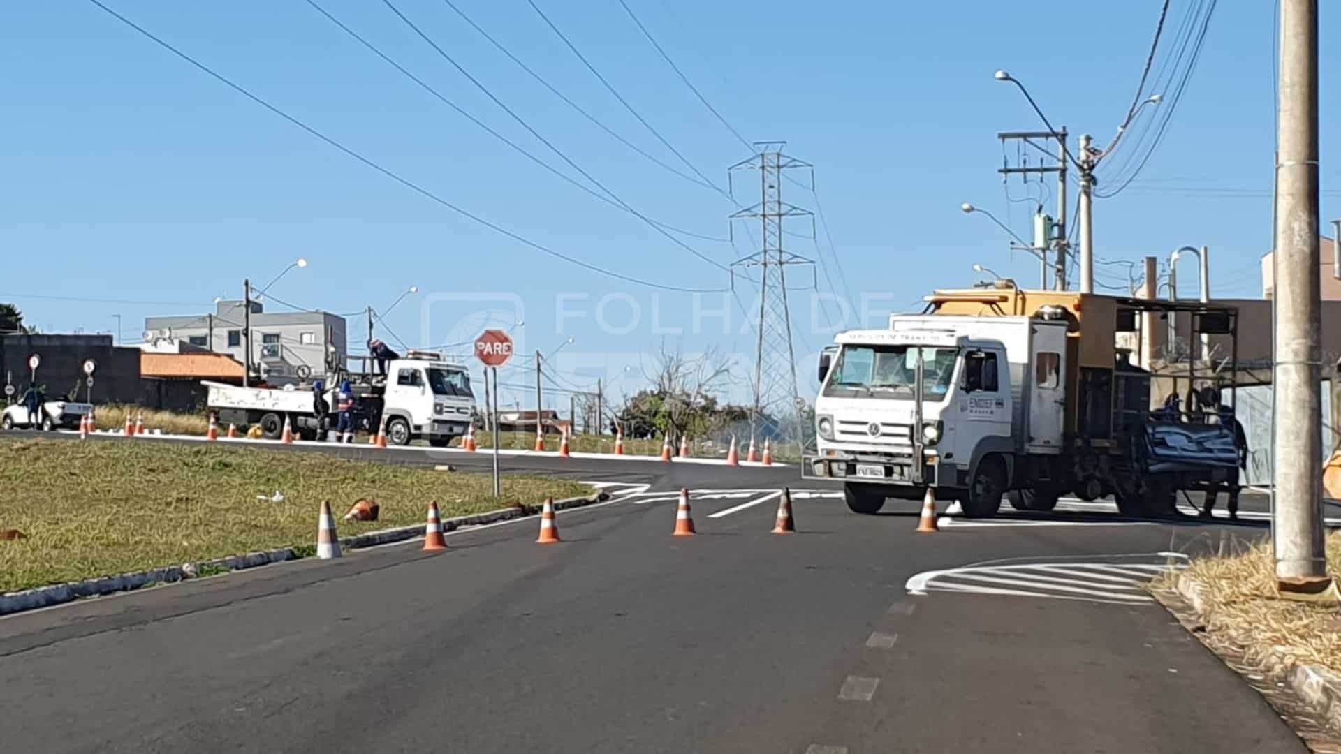 A sinalização reforça os locais de parada obrigatória e também cria uma espécie de rotatória no local, para orientar o fluxo dos veículos. Também foram reforçadas as placas de advertência e sinalização de solo na via.