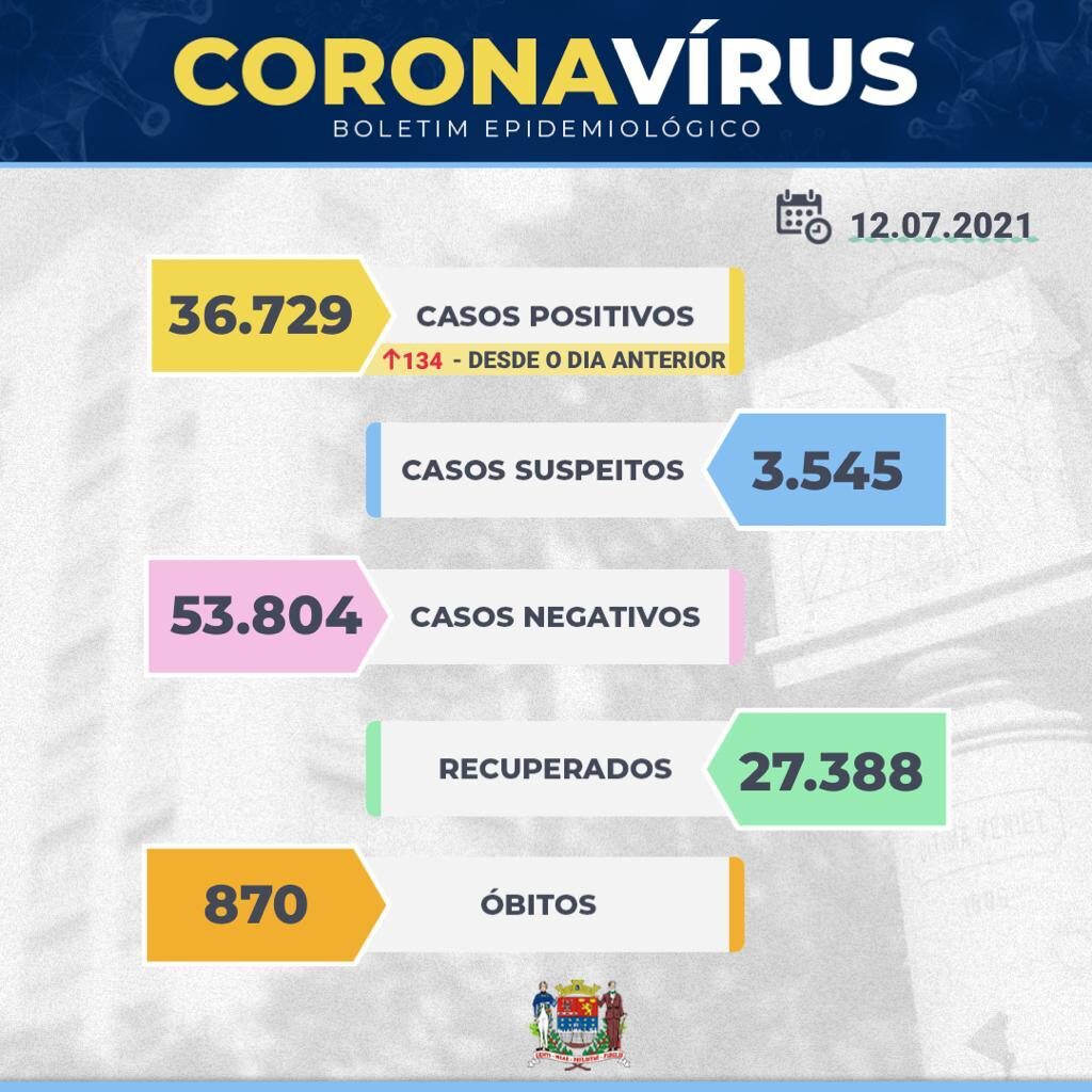 A semana começou com mais cinco mortes e 134 casos positivos da covid-19. A cidade soma agora 870 vítimas da doença e 36.729 pessoas já foram infectadas pelo coronavírus ao longo da pandemia. As vítimas do boletim divulgado nessa segunda-feira, 12 de julho, pela Vigilância Epidemiológica são três mulheres, de 51, 72 e 77 anos, além de dois homens, de 41 e 57 anos. Todas as vítimas apresentavam doenças pré-existentes.