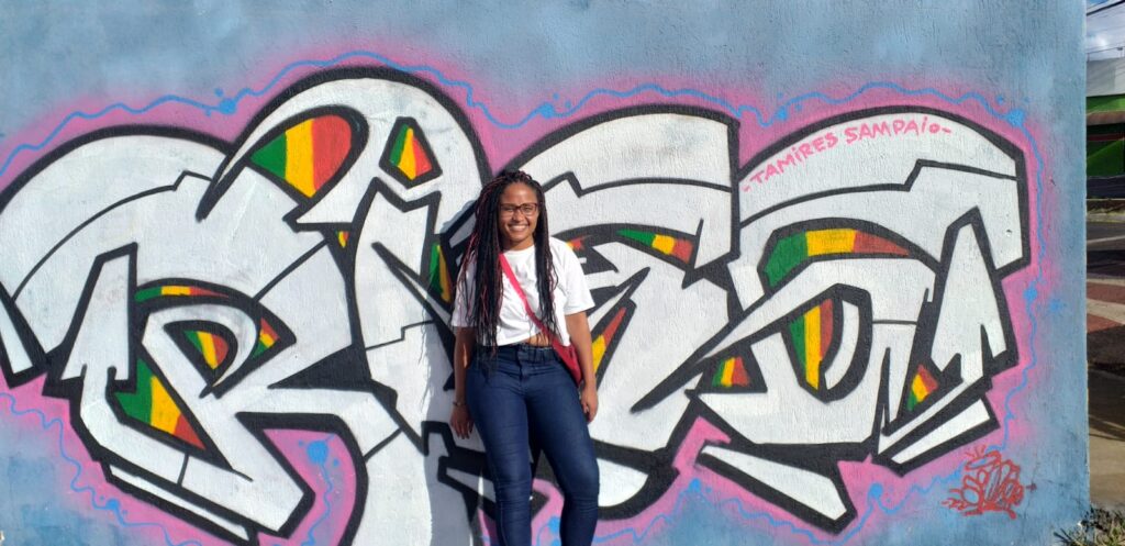 Tamires Sampaio, líder do movimento negro, bate um papo com comunidade do Aeroporto