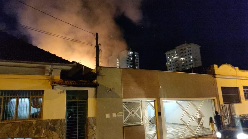 Incêndio de grandes proporções destrói barracão localizado aos fundos da antiga Over Night na área central de Franca. Ninguém ficou ferido, mas os moradores ao lado estão com medo do fogo atingir suas residências.