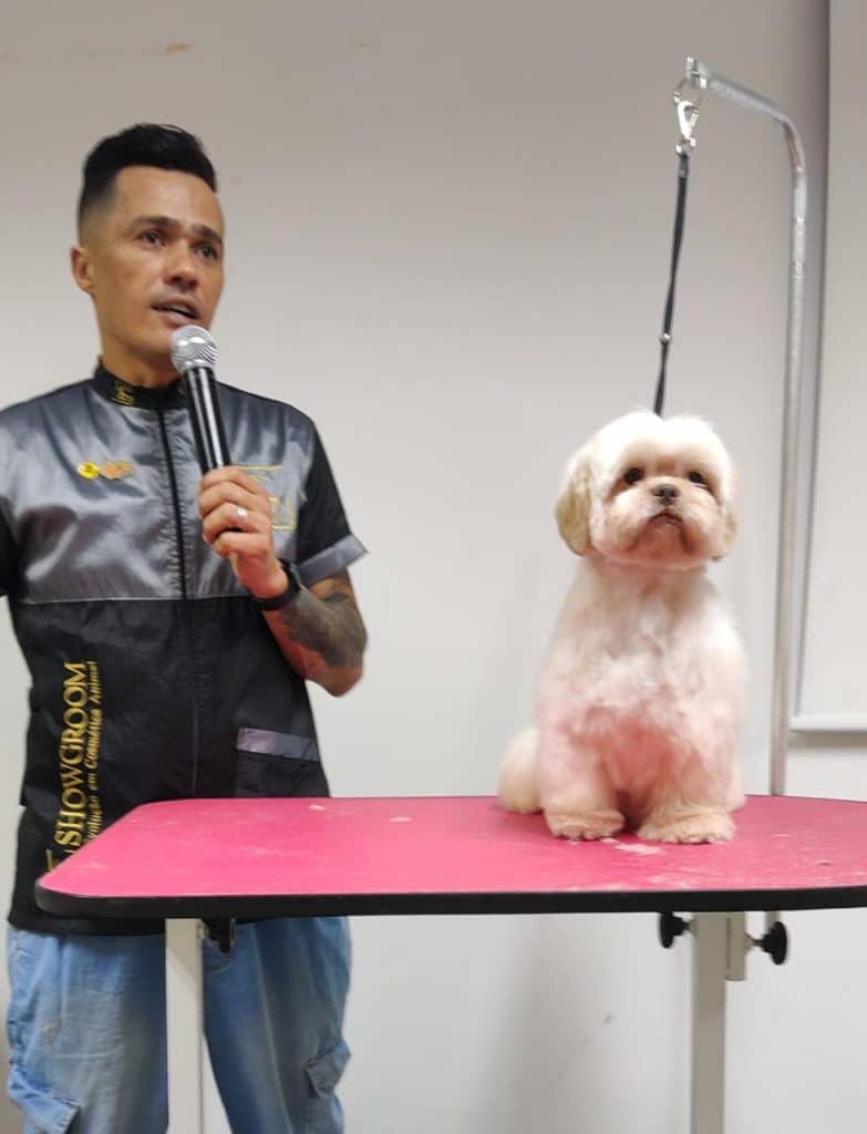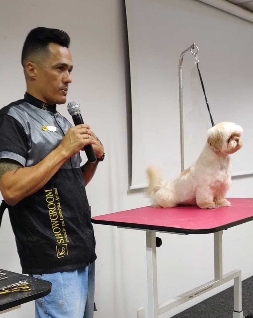 O evento ganhou pitadas de prática quando Éverton subiu ao palco. Famoso pela sua tosa em apenas 30 minutos, ele fez uma demonstração ao vivo para os espectadores presentes. A plateia ficou claramente impressionada quando o talentoso Groomer levou apenas 11 minutos para realizar a tosagem de um dos lados do animal.