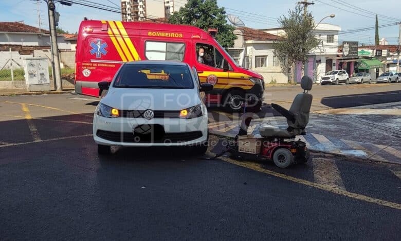 Cadeirante em triciclo elétrico se envolve em acidente no Centro de Franca