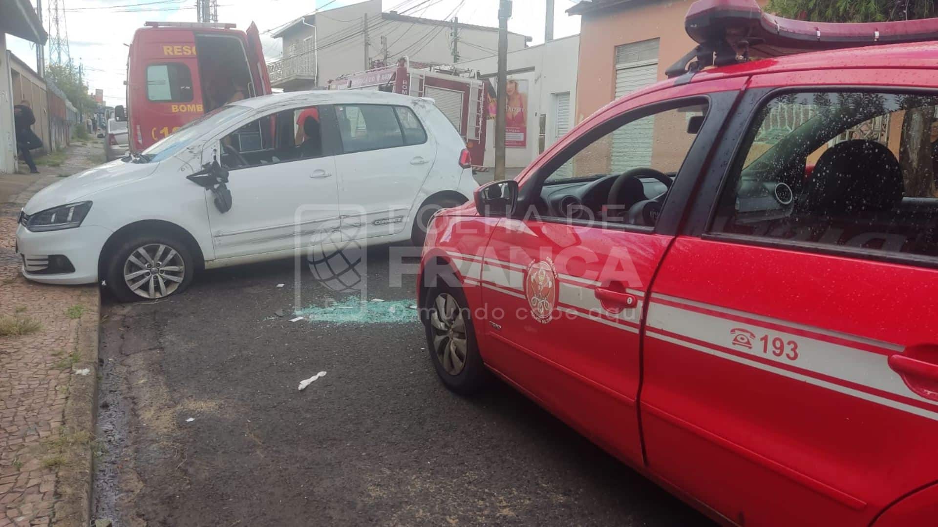 Segundo os policiais do Corpo de Bombeiros, que atenderam a ocorrência, o motorista da caminhonete alegou que o freio falhou e acabou atingido a lateral do veículo que seguia pela Antônio Bernardes Pinto. Com o impacto, o veículo Fox rodou e tombou.