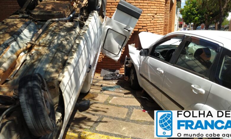 Uma colisão entre dois veículos na tarde desta terça-feira, 29, terminou com uma pessoa ferida e dois carros destruídos na Cidade Nova em Franca. De acordo com o boletim de ocorrência da Polícia Militar, a motorista da Fiorino teria avançado o sinal de parada obrigatória da rua Afonso Pena e atingiu o veículo Fiesta que transitava pela rua Prudente de Morais. Com o impacto a Fiorino capotou e ficou prensada entre o veículo e uma árvore. Já o outro veículo chocou-se contra o muro da residência.