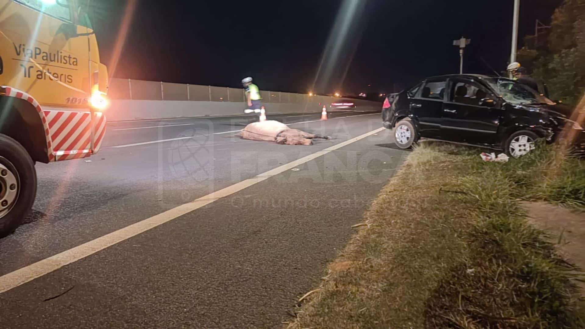 Mais um episódio de animal solto na pista de rolagem da rodovia provocou um grave acidente no quilômetro 405 da Cândido Portinari, no sentido Franca a Cristais Paulista, e quase termina em tragédia na noite deste sábado, 27.