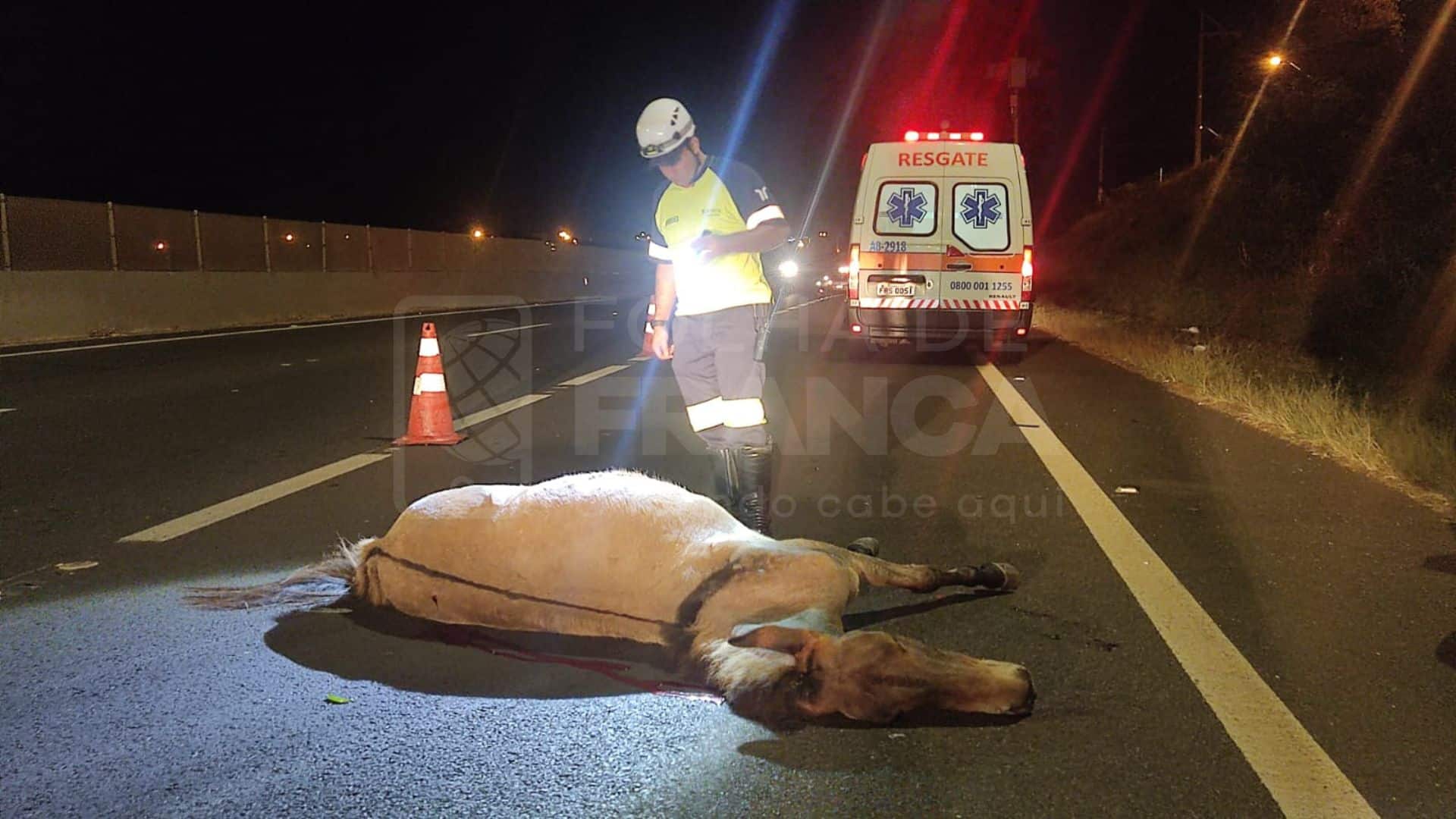 De novo: cavalo solto na Portinari provoca acidente grave; uma pessoa fica ferida