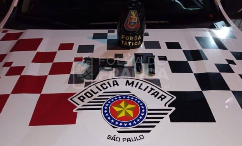 Um homem foi parar na delegacia na madrugada desta quarta-feira, 1º, após ser flagrado pela equipe de Força Tática “passeando” pela rua Francisco Marques portando uma arma de fogo. O caso ocorreu nas proximidades da rotatória da São Judas, em Franca e, segundo informações da PM, o homem estava caminhando pela via portando um cinturão com o coldre e o armamento de calibre 380mm, além de dois carregadores contendo 30 munições.