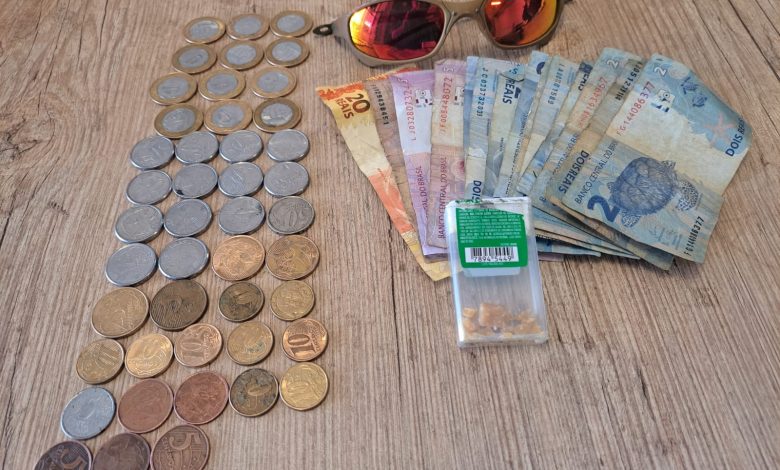 Em revista pessoal, os guardas localizaram uma porção e fragmentos de substância semelhante ao crack, acondicionados em uma caixinha de Tic Tac, além da quantia de R$ 76,20 em dinheiro, em notas diversas, valores considerados incompatíveis com sua condição declarada.