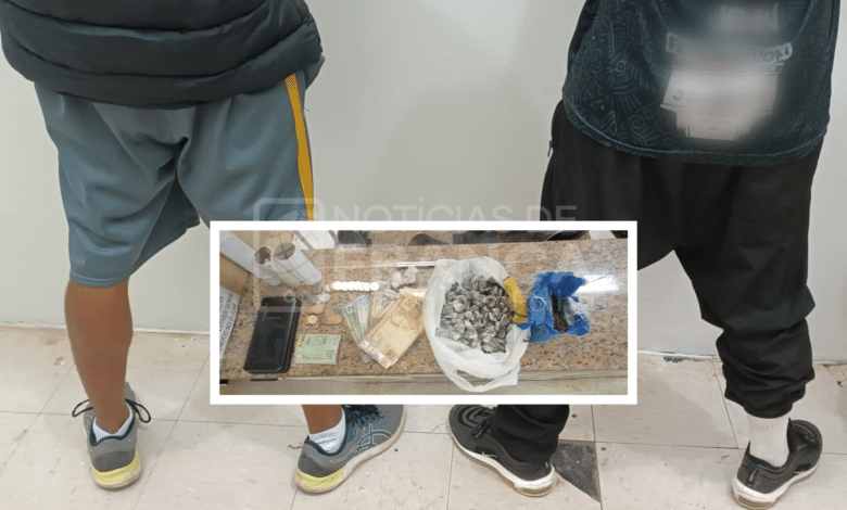 A Polícia Militar prendeu em flagrante dois homens de 18 e 25 anos acusados pelo crime de tráfico de entorpecentes. Os homens vendiam as drogas invadiram em uma residência invadida na Vila Gosuen, local conhecido como Puxa Faca.
