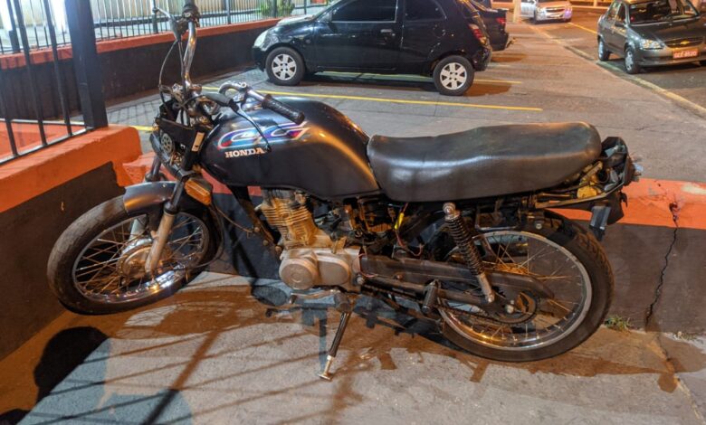 Um menor foi apreendido com uma moto furtada na noite dessa segunda-feira, 07, no bairro Jardim Aeroporto 3, zona Sul de Franca. O adolescente, de 17 anos, foi flagrado durante patrulhamento realizado pela Polícia Militar, na Rua José Vicente Maciel. De acordo com informações da PM, ele seguia na moto sem farol, lanterna e placa, junto com outro indivíduo, ambos sem capacete. No momento em que avistaram a viatura, os suspeitos tentaram fugir sendo acompanhados de perto pela polícia. Durante a fuga, o menor perdeu o controle do veículo e caiu. Um dos suspeitos conseguiu fugir e o jovem foi abordado pelos PMs.