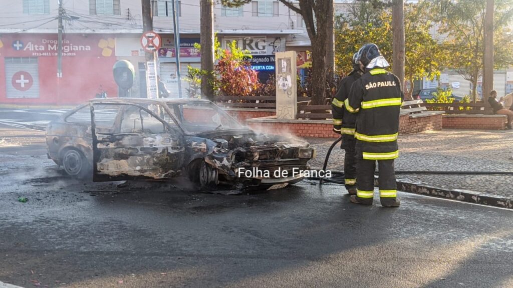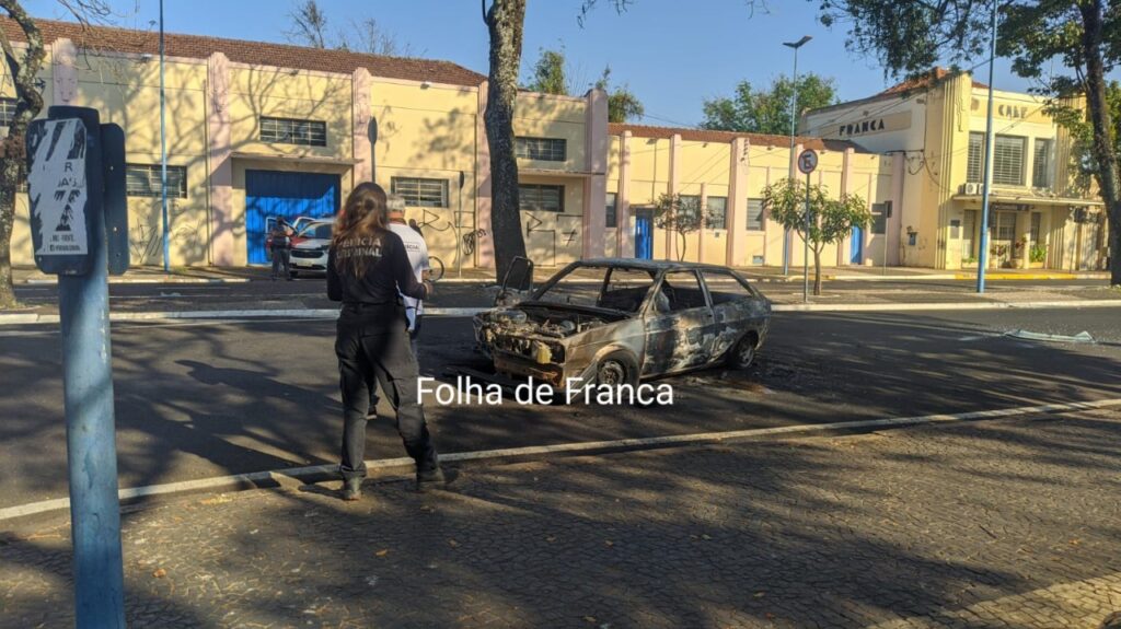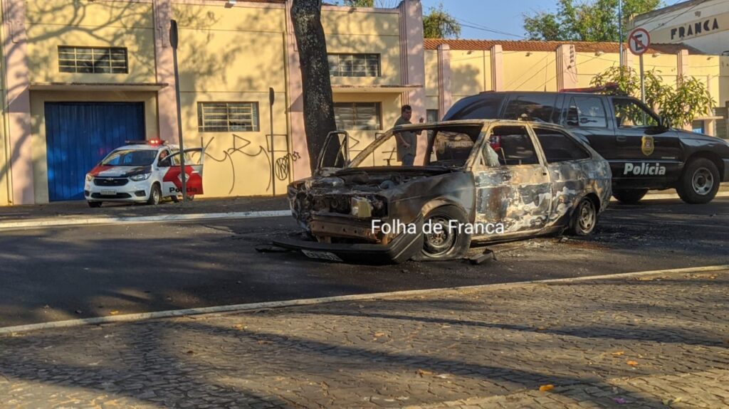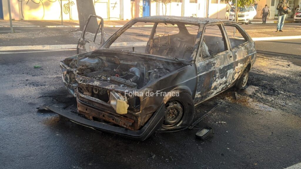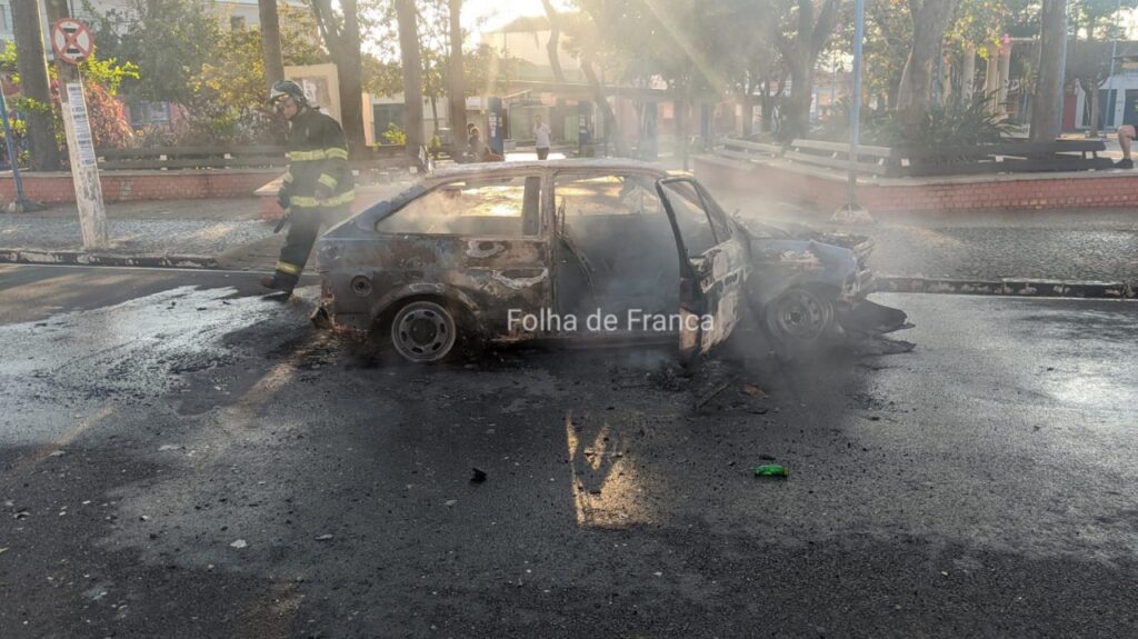 Um carro ficou completamente destruído após pegar fogo na Rua General Carneiro, na Estação, em Franca. O incêndio no veículo começou depois que o motorista bateu contra uma árvore. De acordo com informações de testemunhas, o motorista seguia na rua no sentido Centro/bairro quando ele perdeu o controle do veículo em uma curva e acabou batendo contra uma árvore. Com o forte impacto, o veículo rodou e parou na contramão da via.