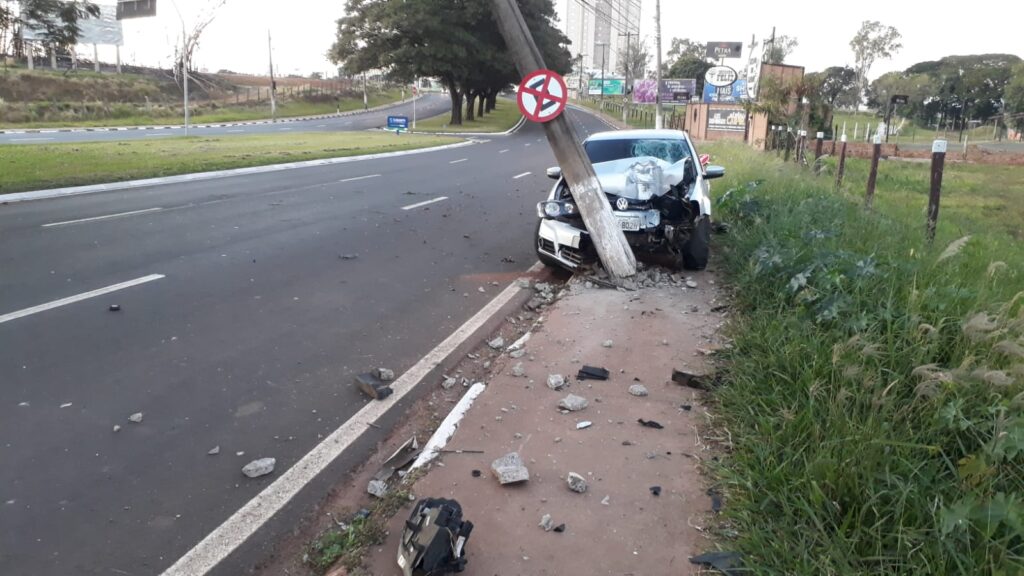 Segundo informações, o motorista seguia no sentido Shopping ao São Joaquim quando teria cochilado na direção. Ele atravessou o canteiro central da avenida, arrancou e arremessou uma placa de pare e só parou depois que atingiu violentamente um poste que chegou a quebrar.