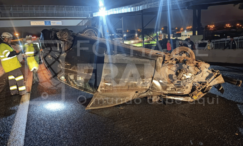 Segundo informações apuradas pela nossa reportagem, o motorista seguia sentido Vila São Sebastião quando foi desviar de um cachorro próximo à passarela e acabou perdendo o controle da direção, chocou-se na defensa metálica e capotou.